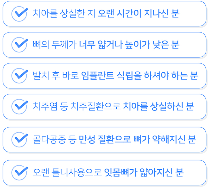 잇몸뼈가 손실 되거나 상태가 좋지 않아